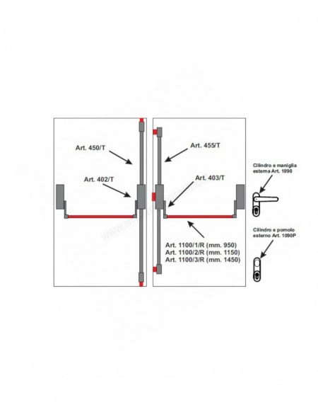 Kit manere antipanica usa 2 canate inchidere total inchidere 5 puncte, canat principal 3 puncte centru sus / jos DIN LATERAL CU maner ext si cheie – VARIANTA PREMIUM